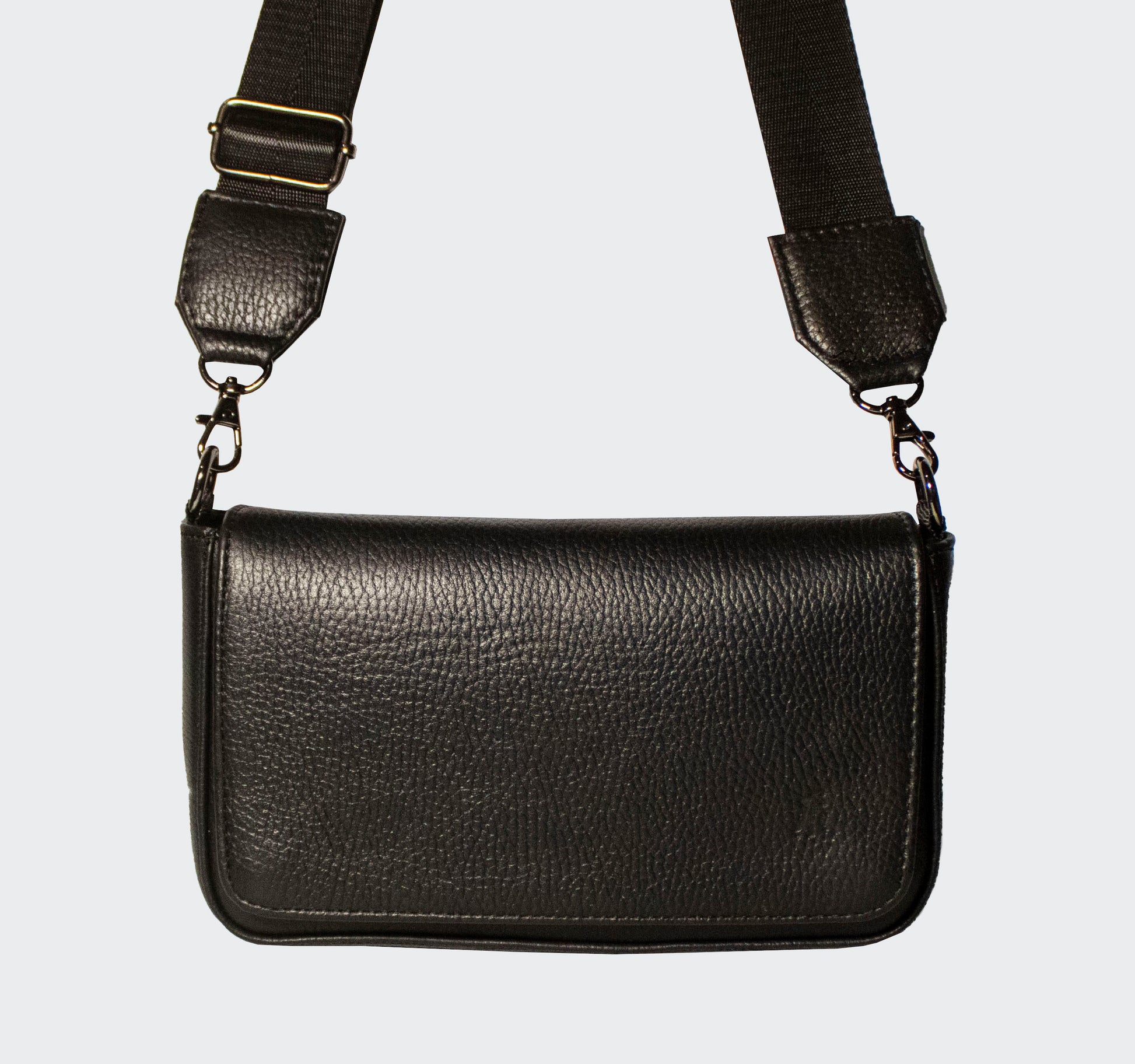 Crossbody color negro, muy elegante hecho 100% piel genuina de calidad Premium.