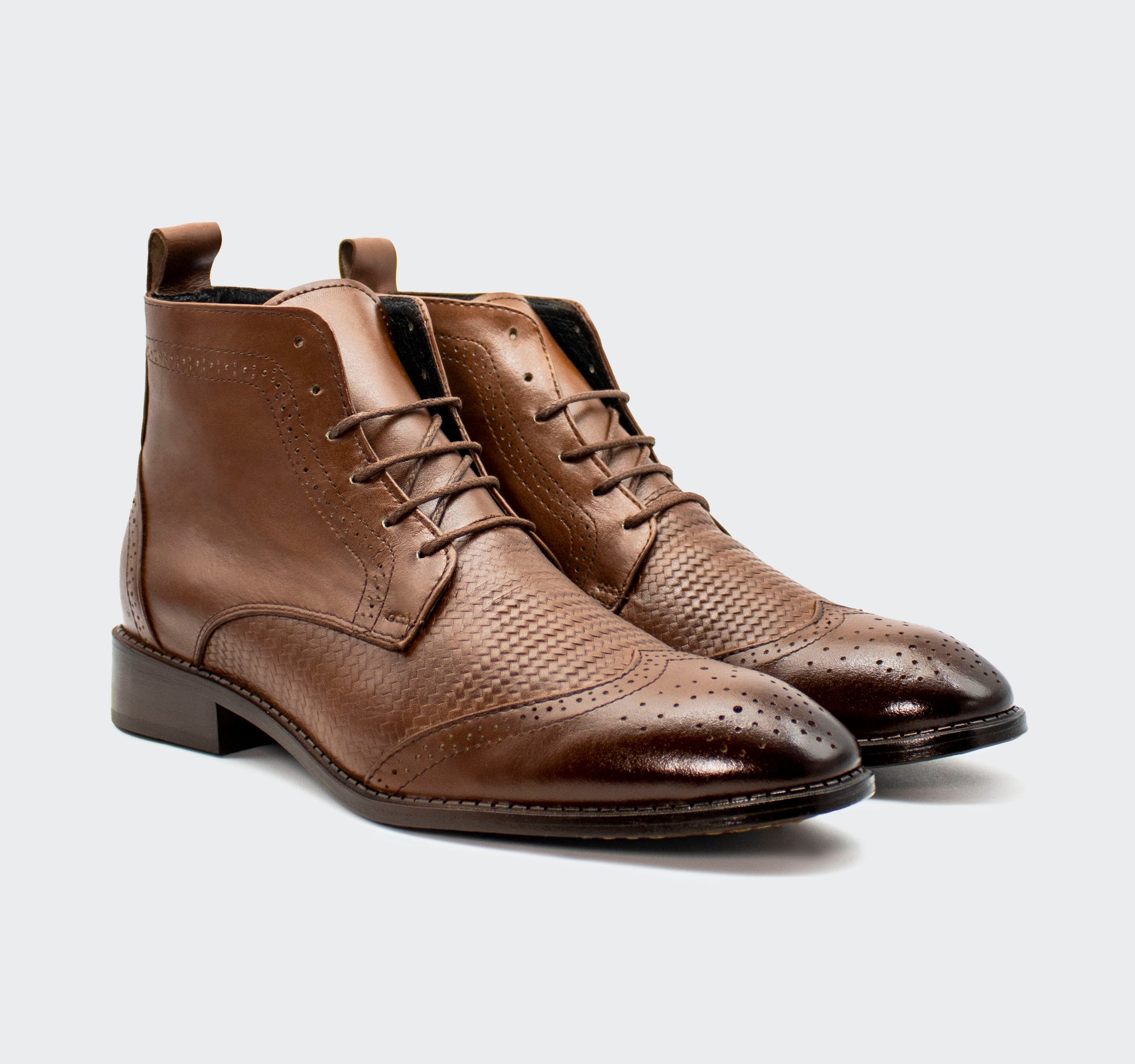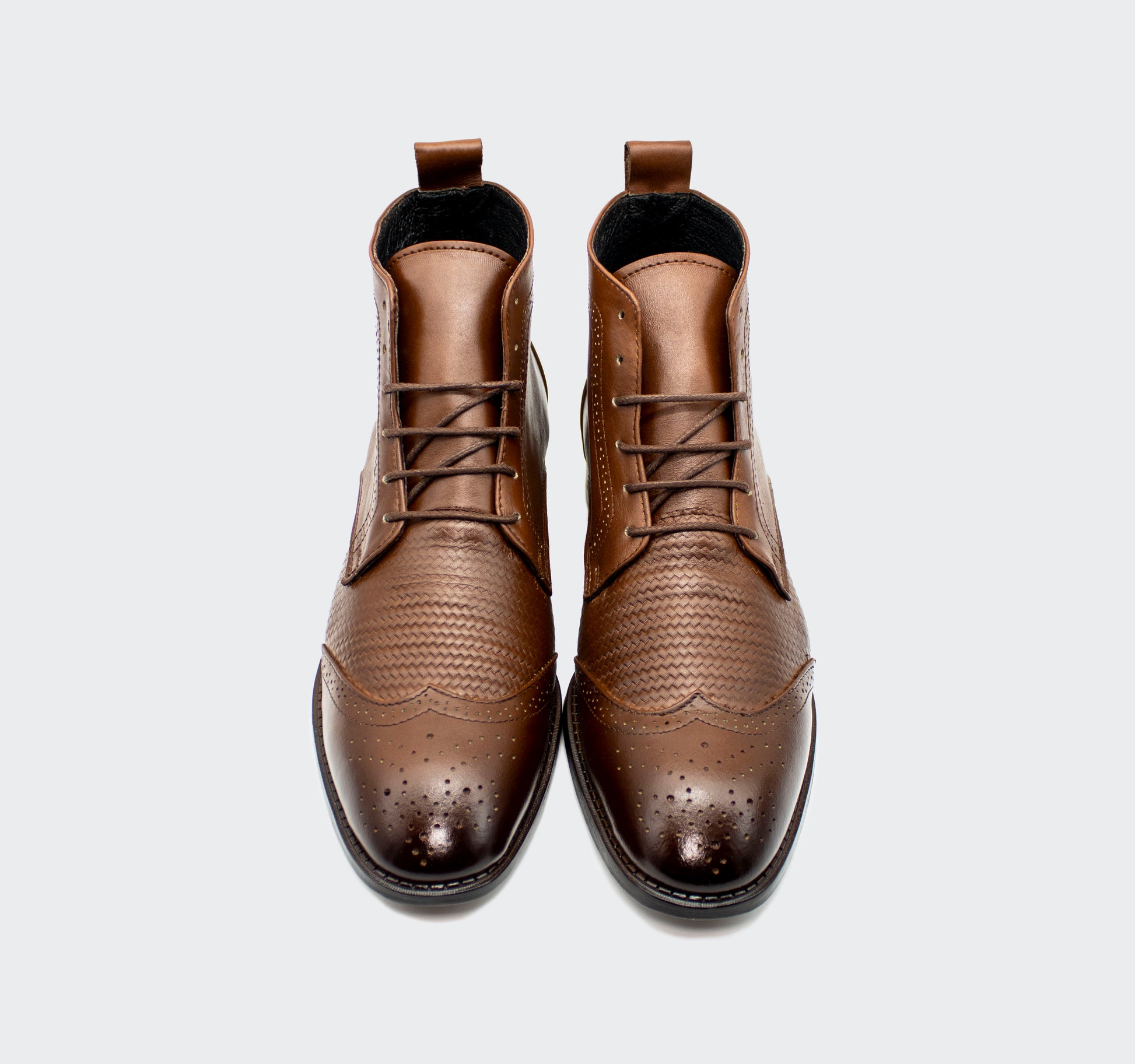 Botín Premium tipo Capboot color café en piel para caballero con suela de cuero natural elaborados totalmente a mano por artesanos del calzado Guanajuatenses.