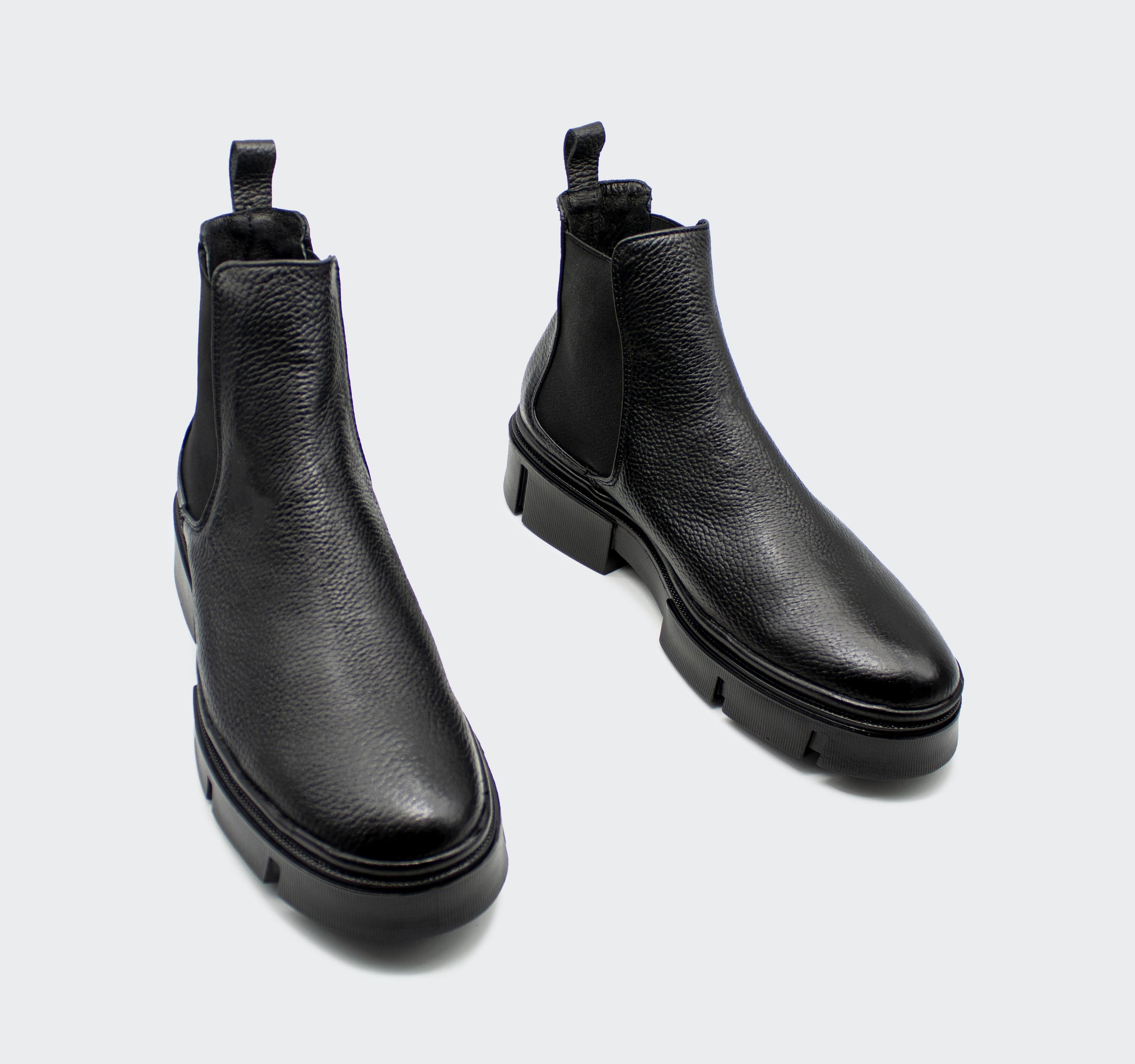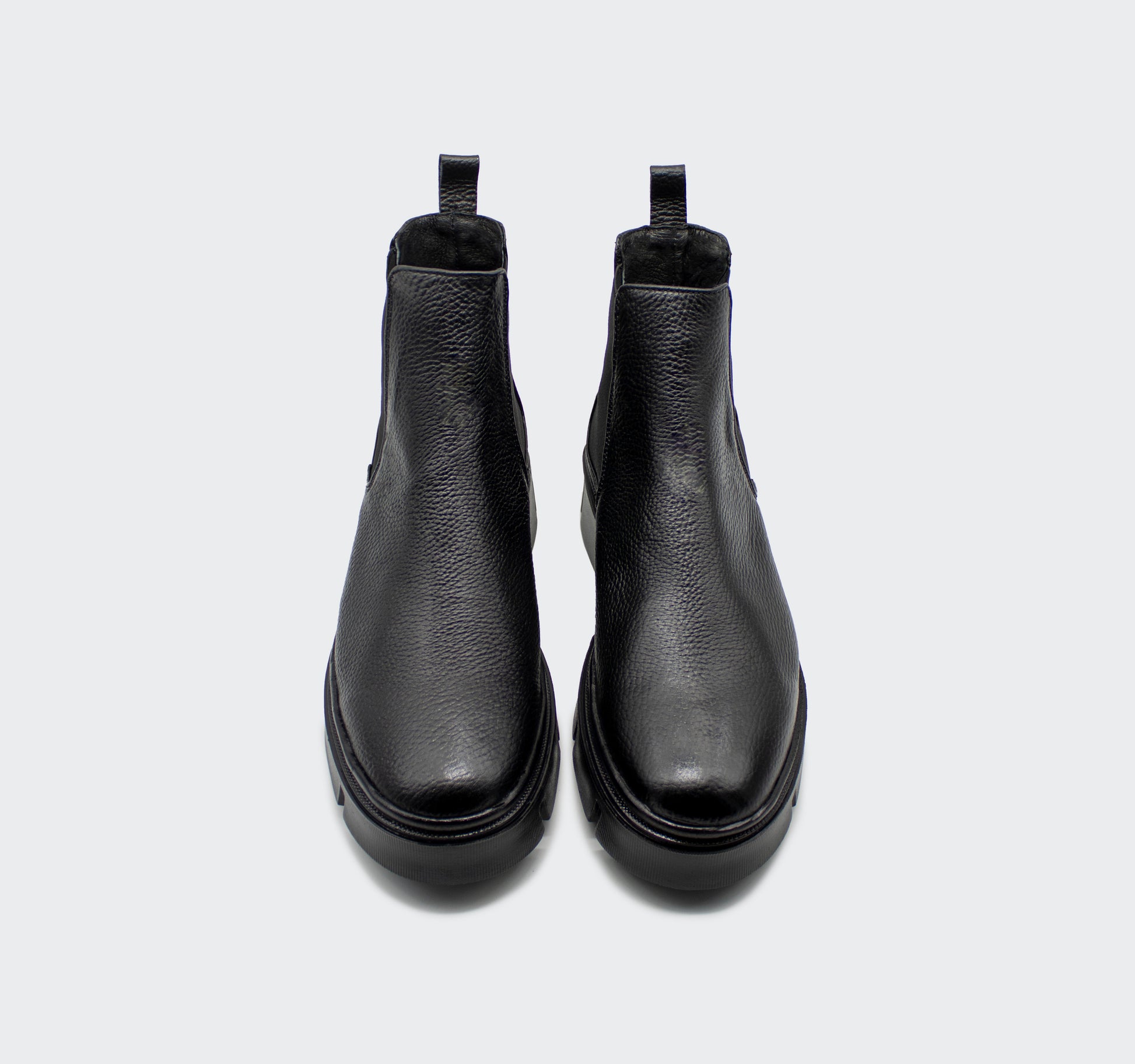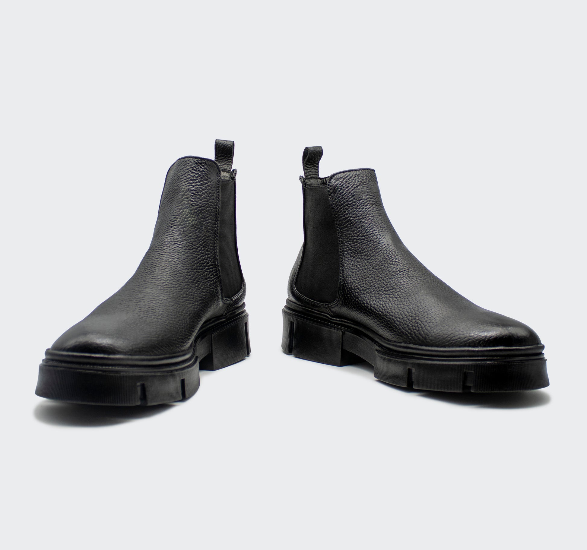 Chelsea Boots Chunky piel floater negro para caballero, elaborados totalmente a mano por artesanos del calzado Guanajuatenses.