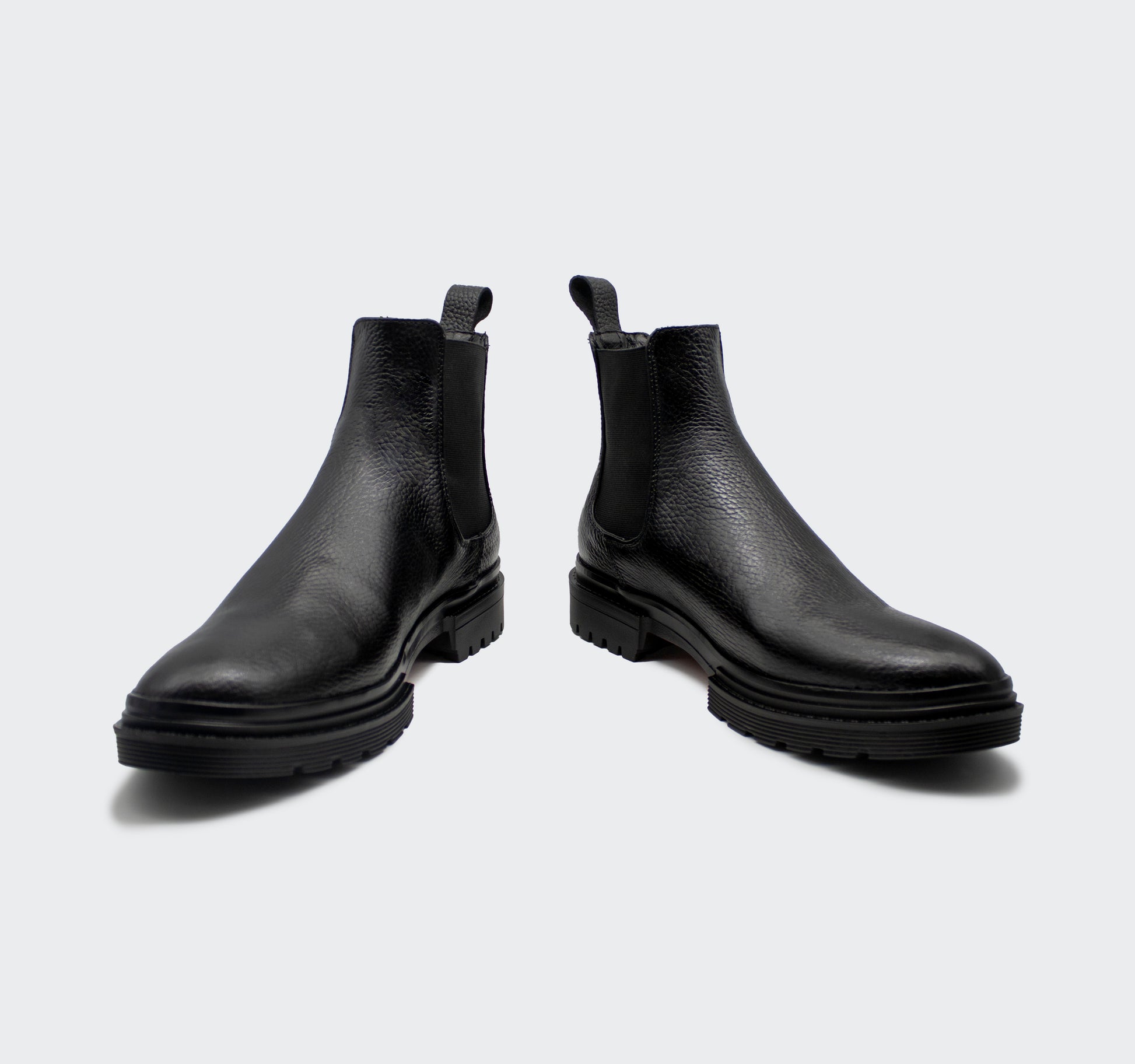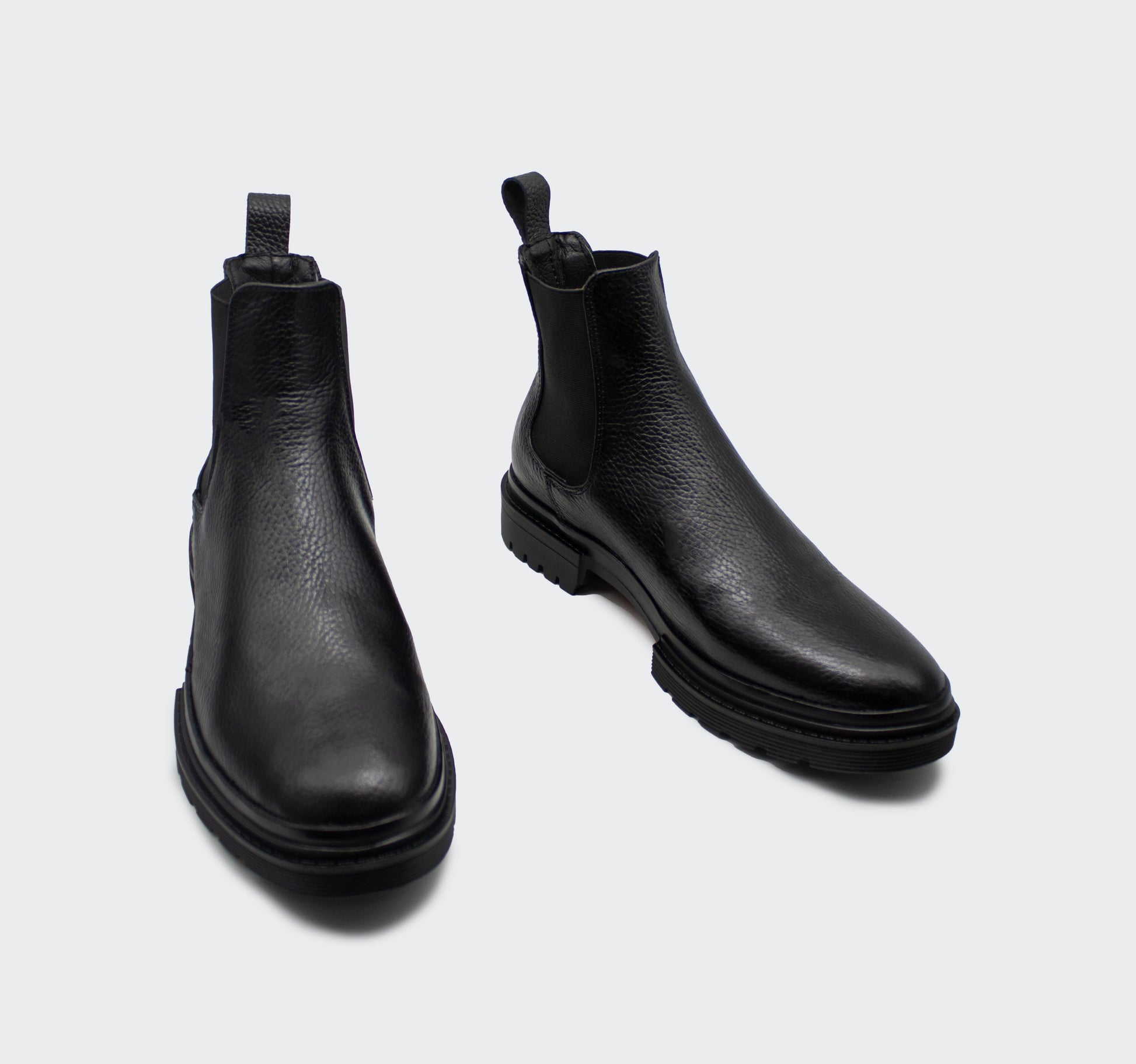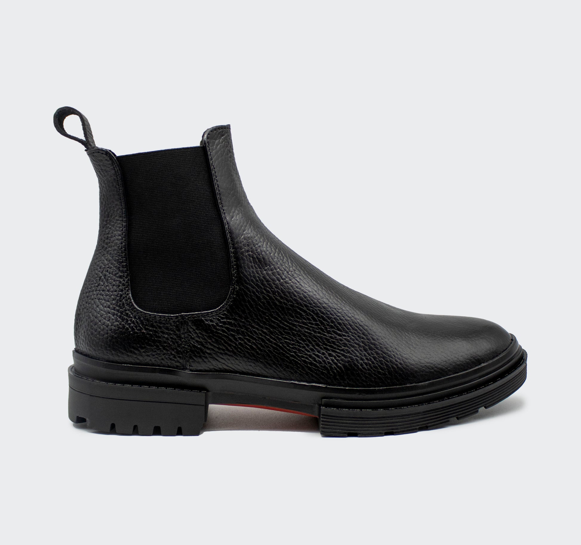 Chelsea Boots Combat piel floater negro para caballero, elaborados totalmente a mano por artesanos del calzado Guanajuatenses.