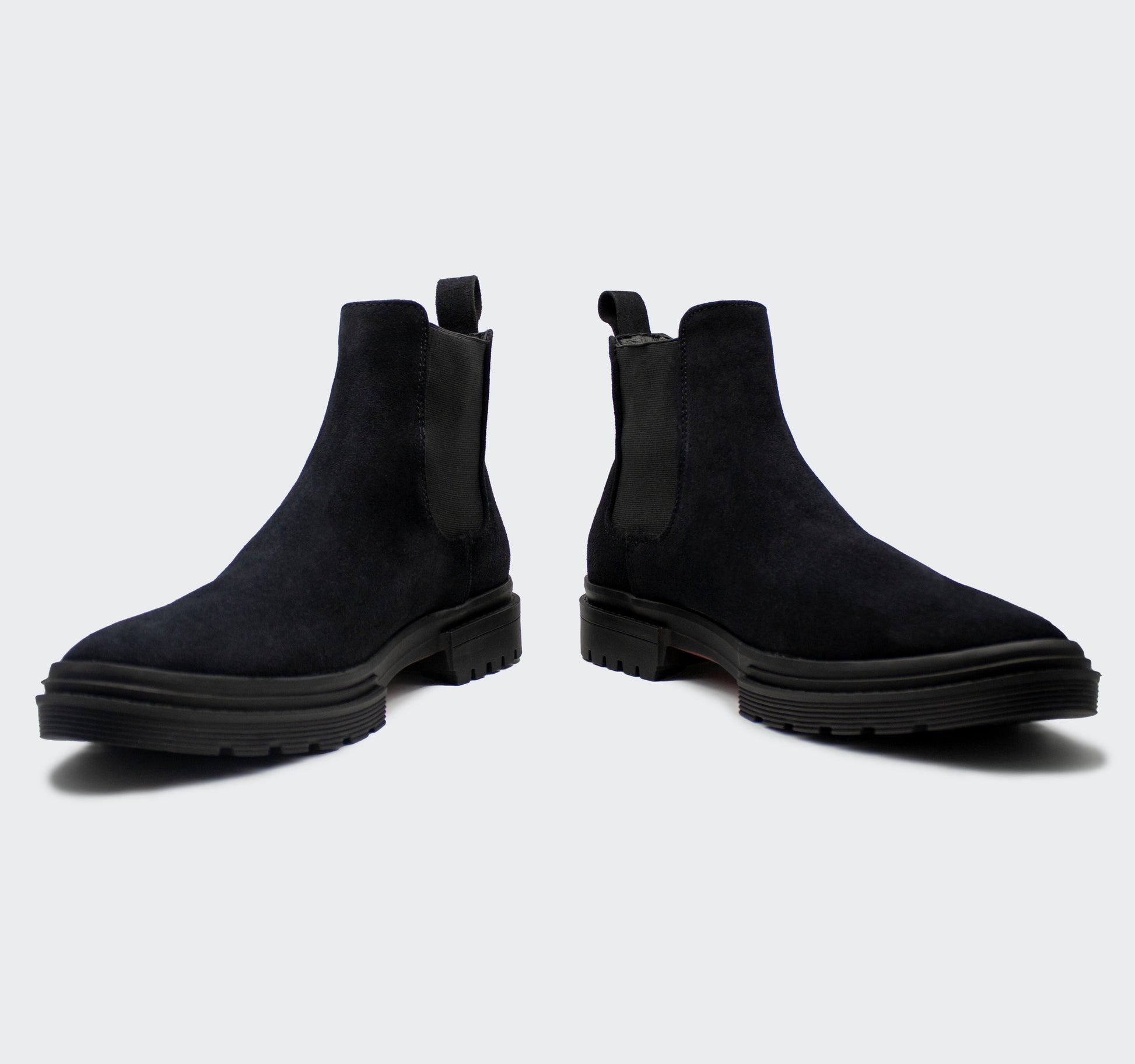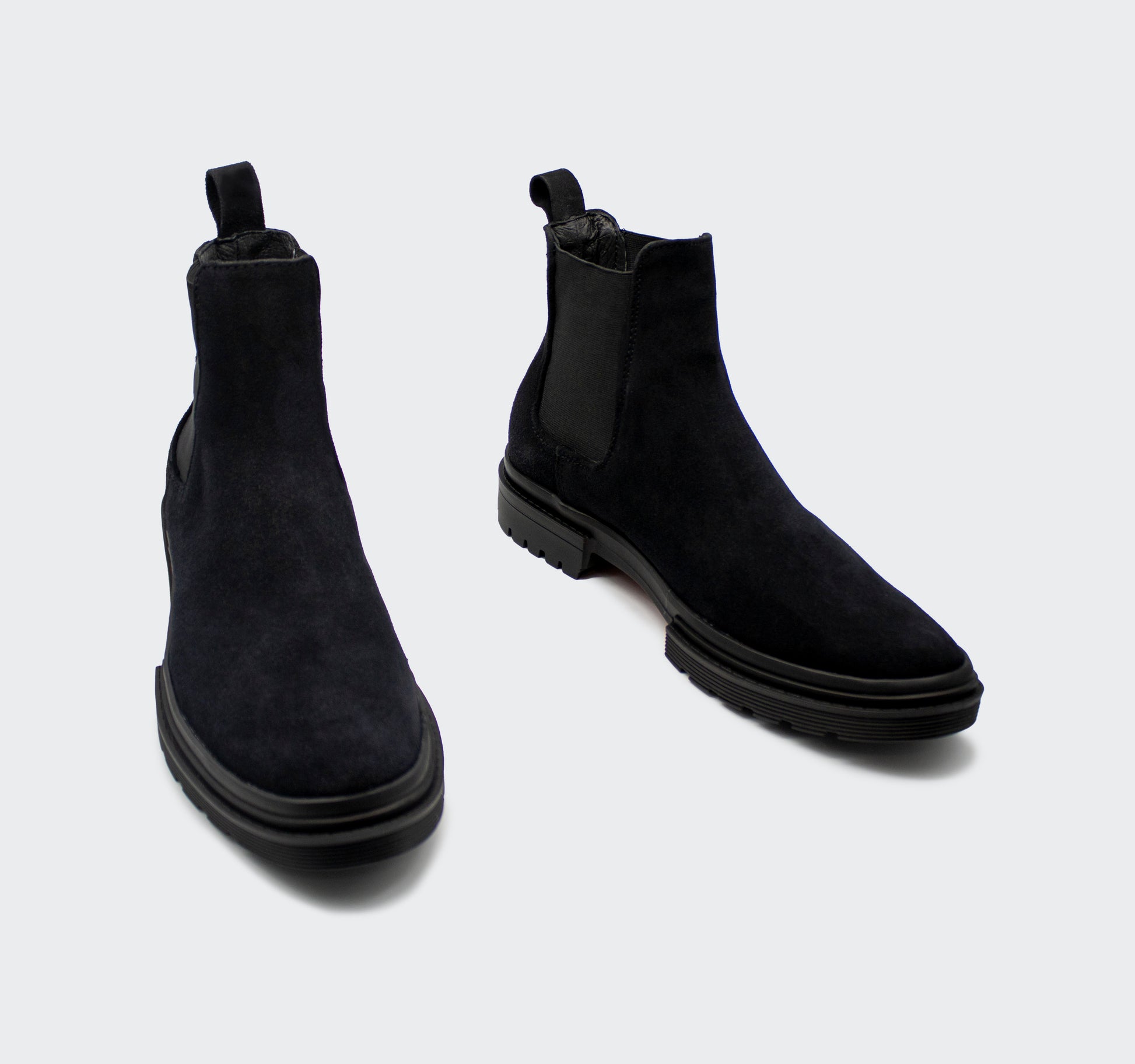 Chelsea Boots Combat piel gamuza negro para caballero, elaborados totalmente a mano por artesanos del calzado Guanajuatenses.
