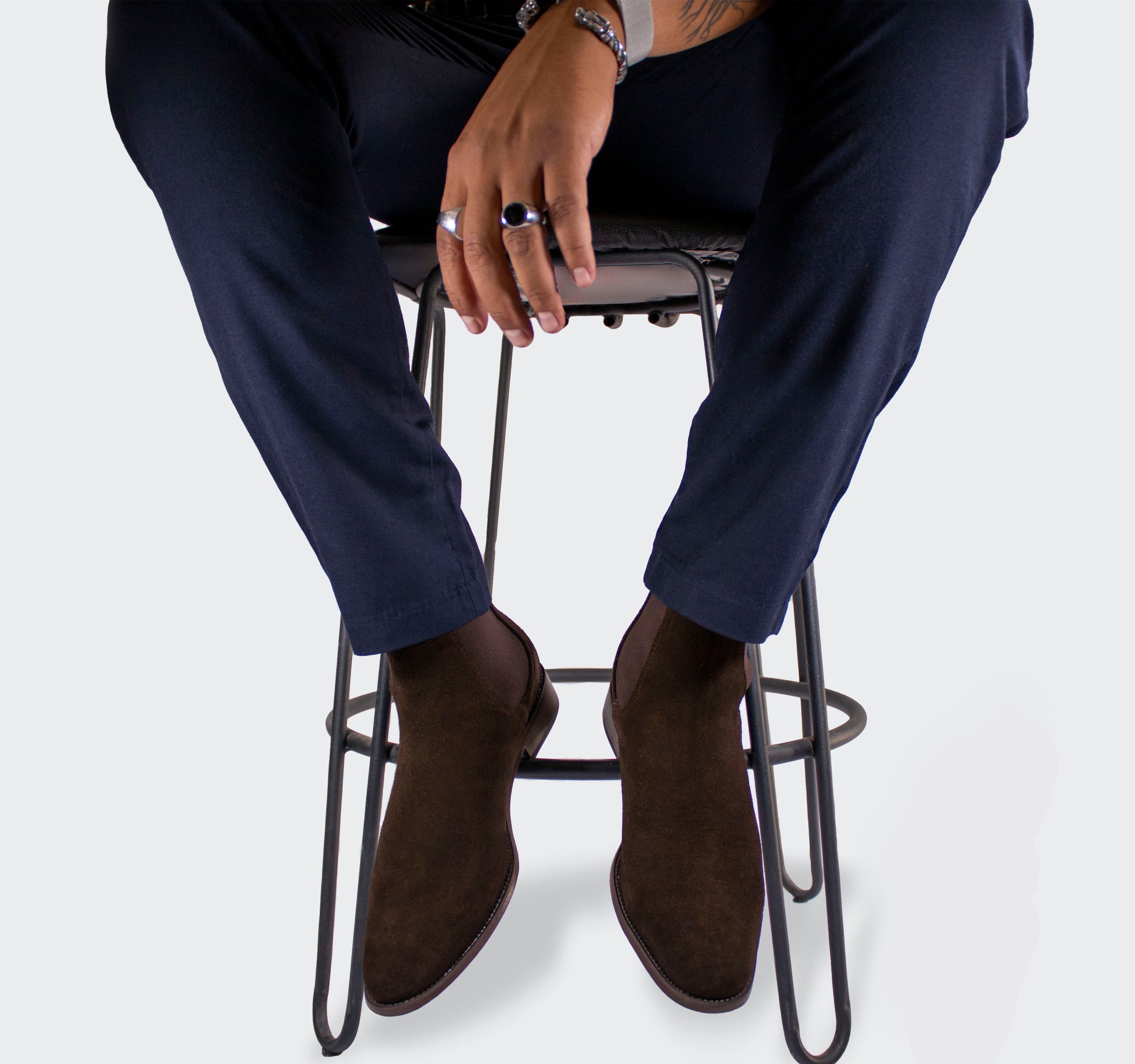 Chelsea Boots piel gamuza para caballero, elaborados totalmente a mano por artesanos del calzado Guanajuatenses.