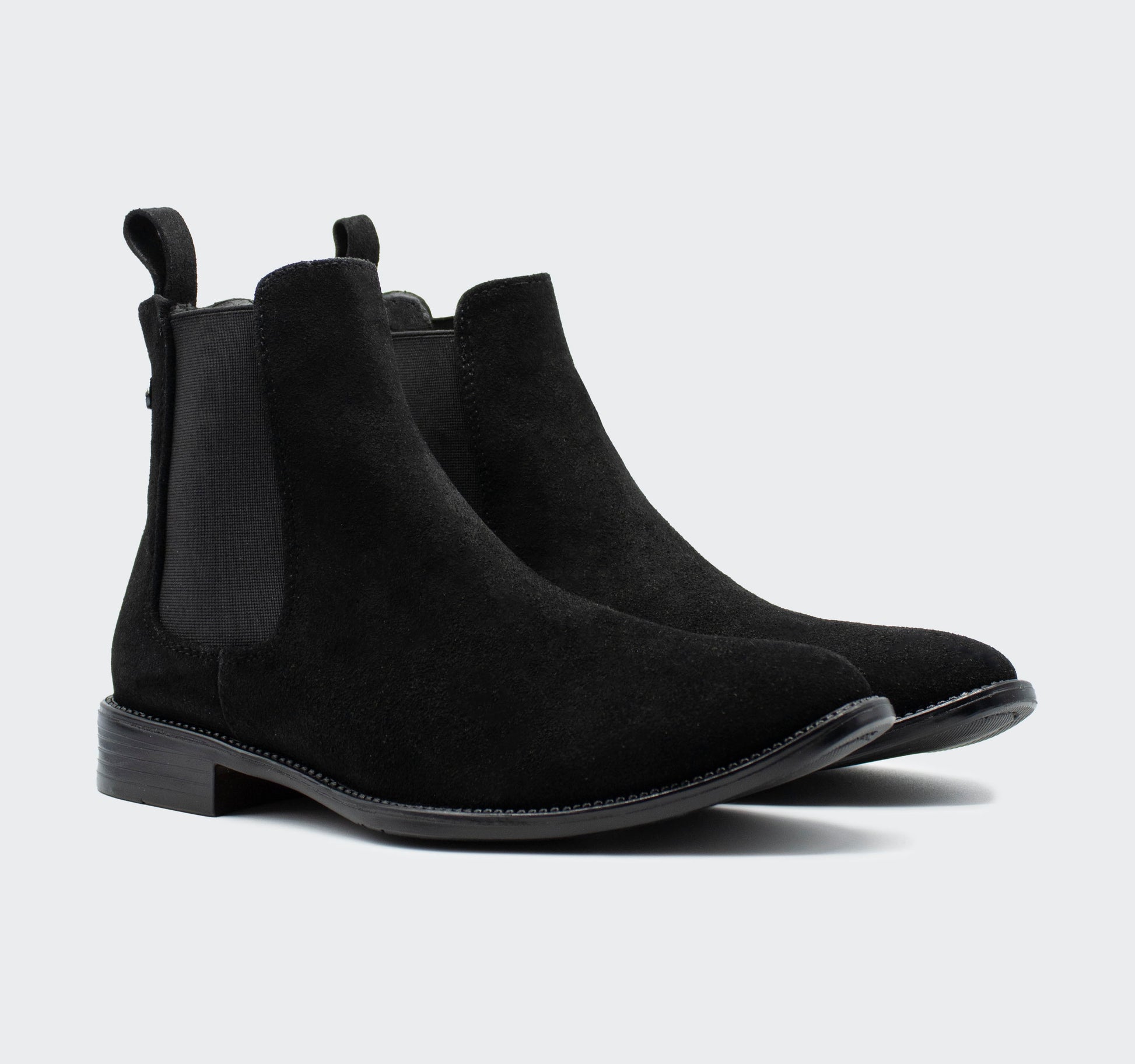 Chelsea Boots piel gamuza negro para caballero, elaborados totalmente a mano por artesanos del calzado Guanajuatenses.