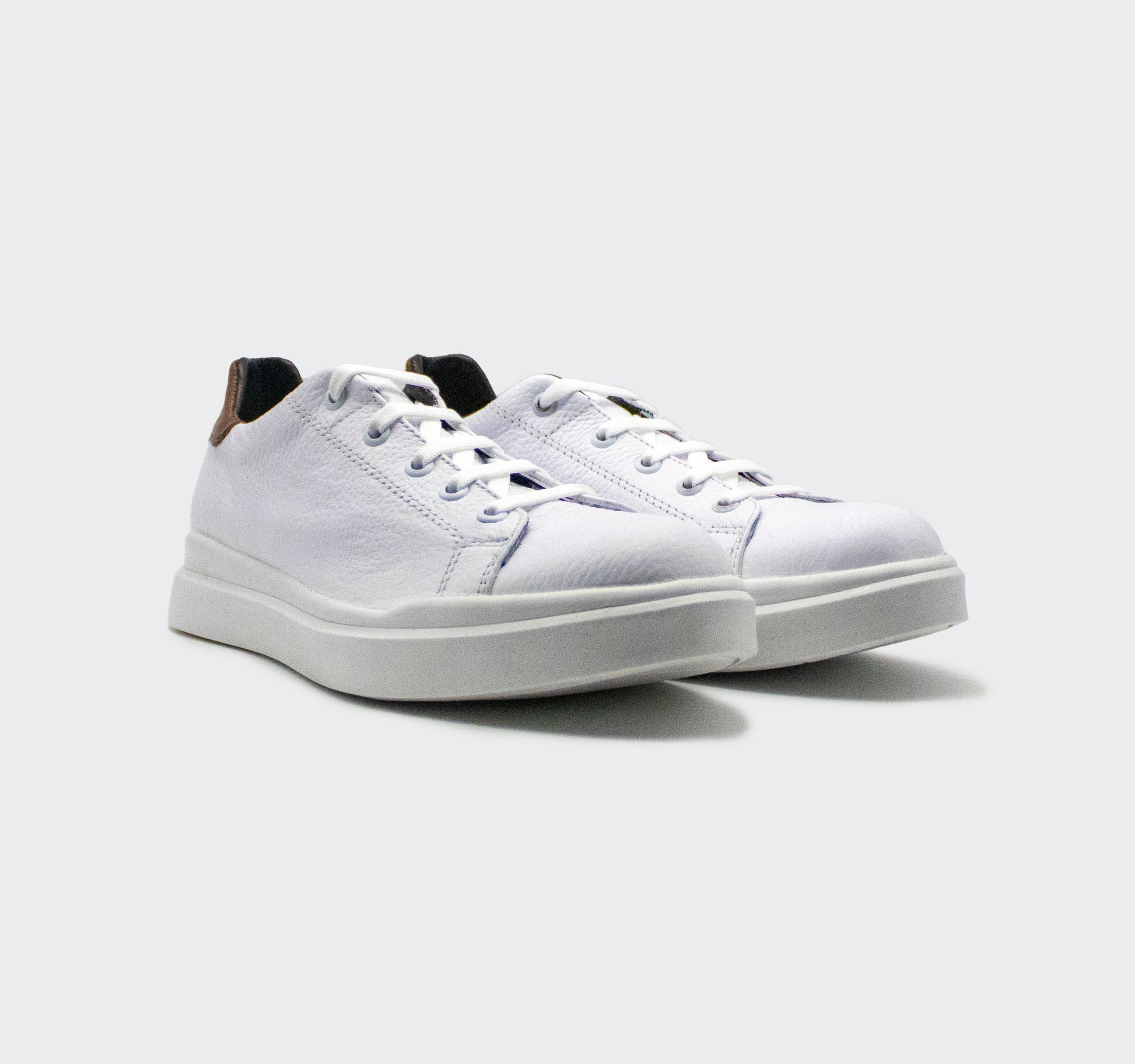 Tenis blancos de piel para caballero, elaborados totalmente a mano por artesanos del calzado Guanajuatenses.