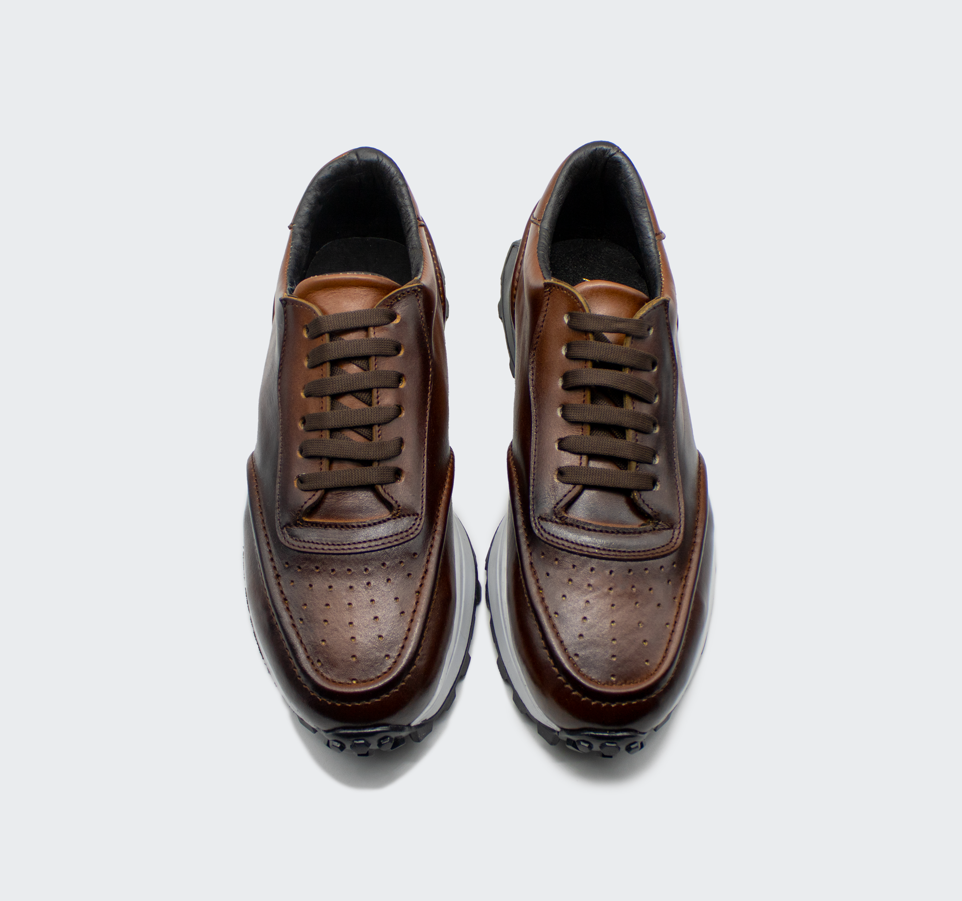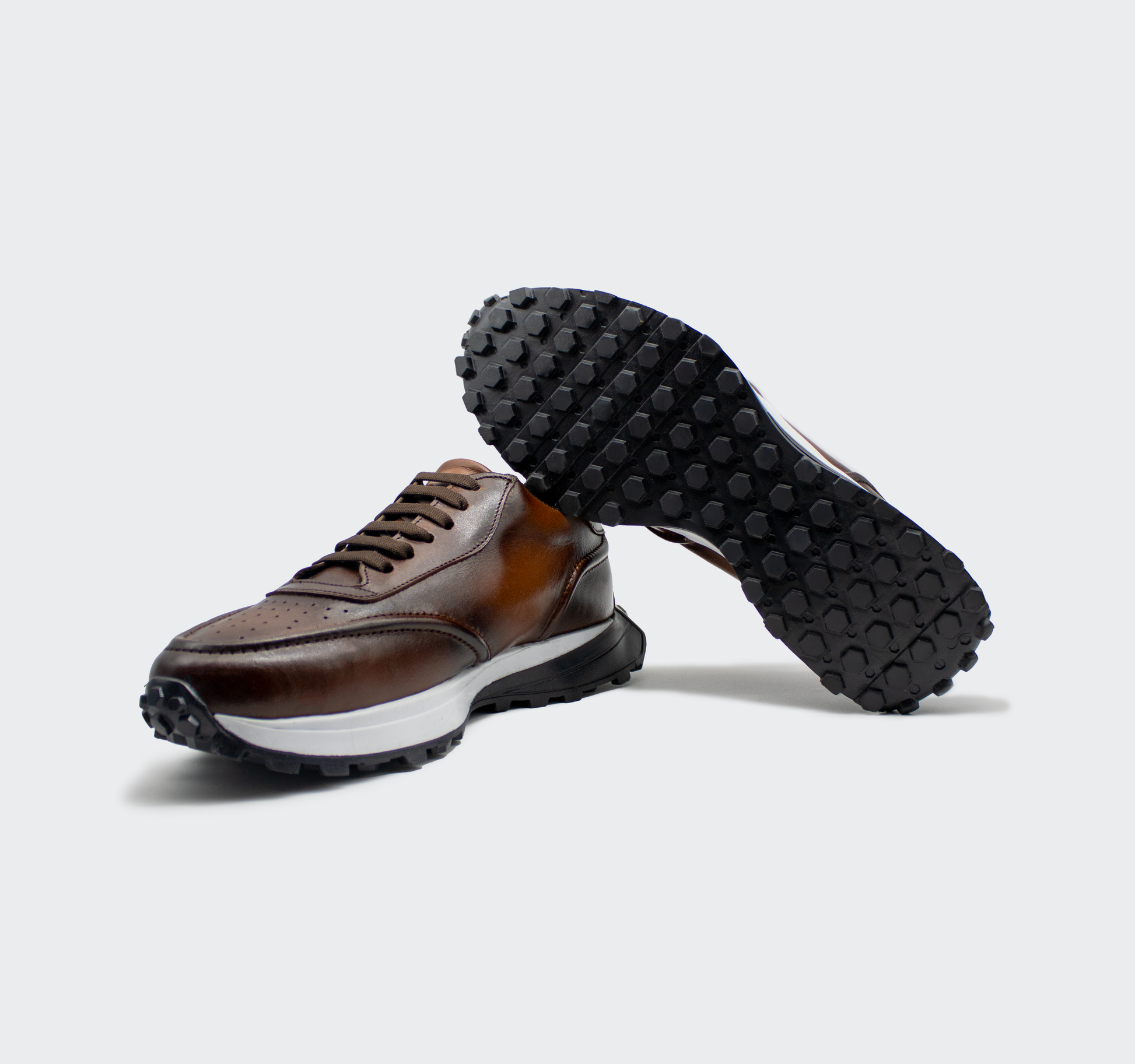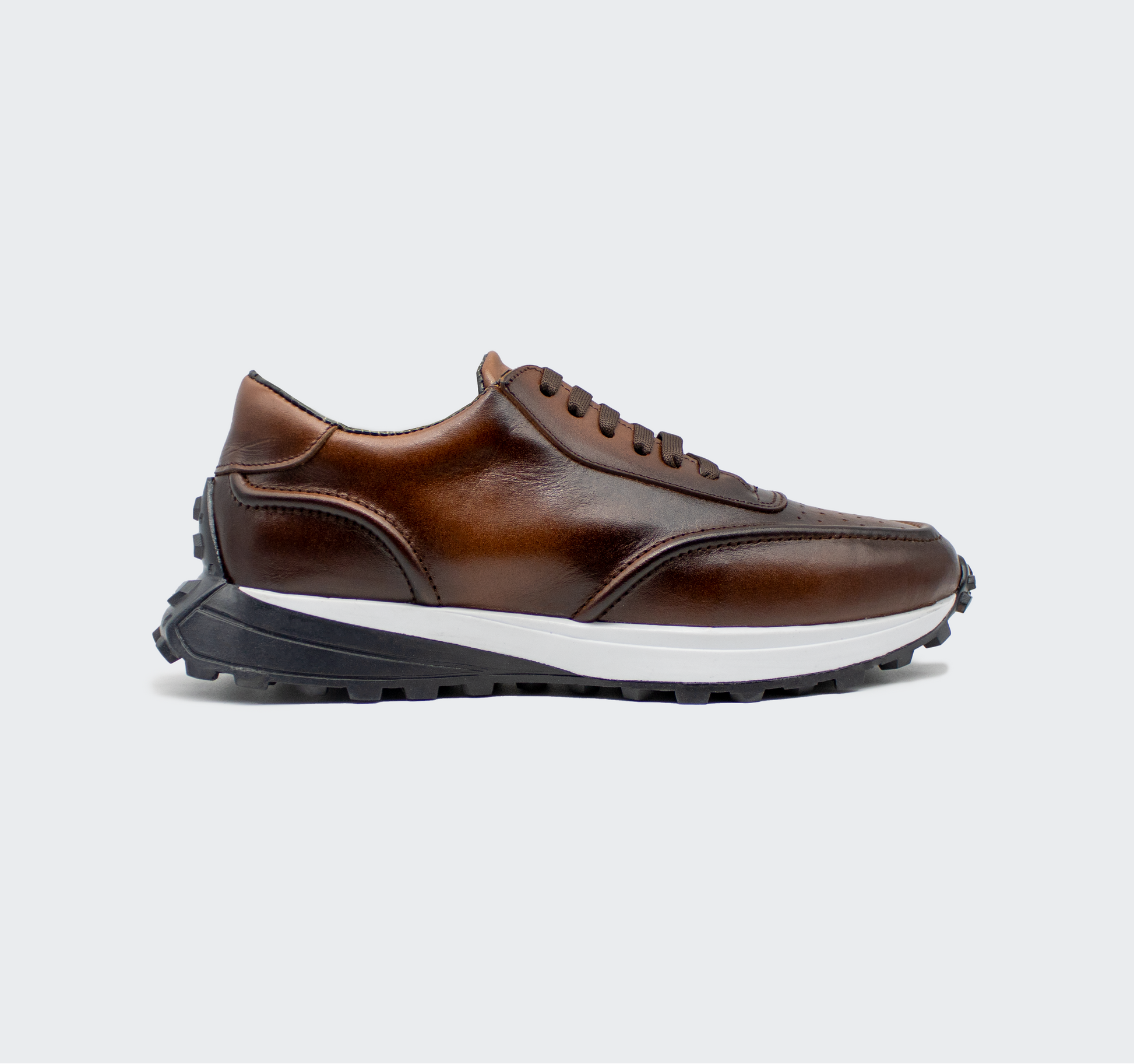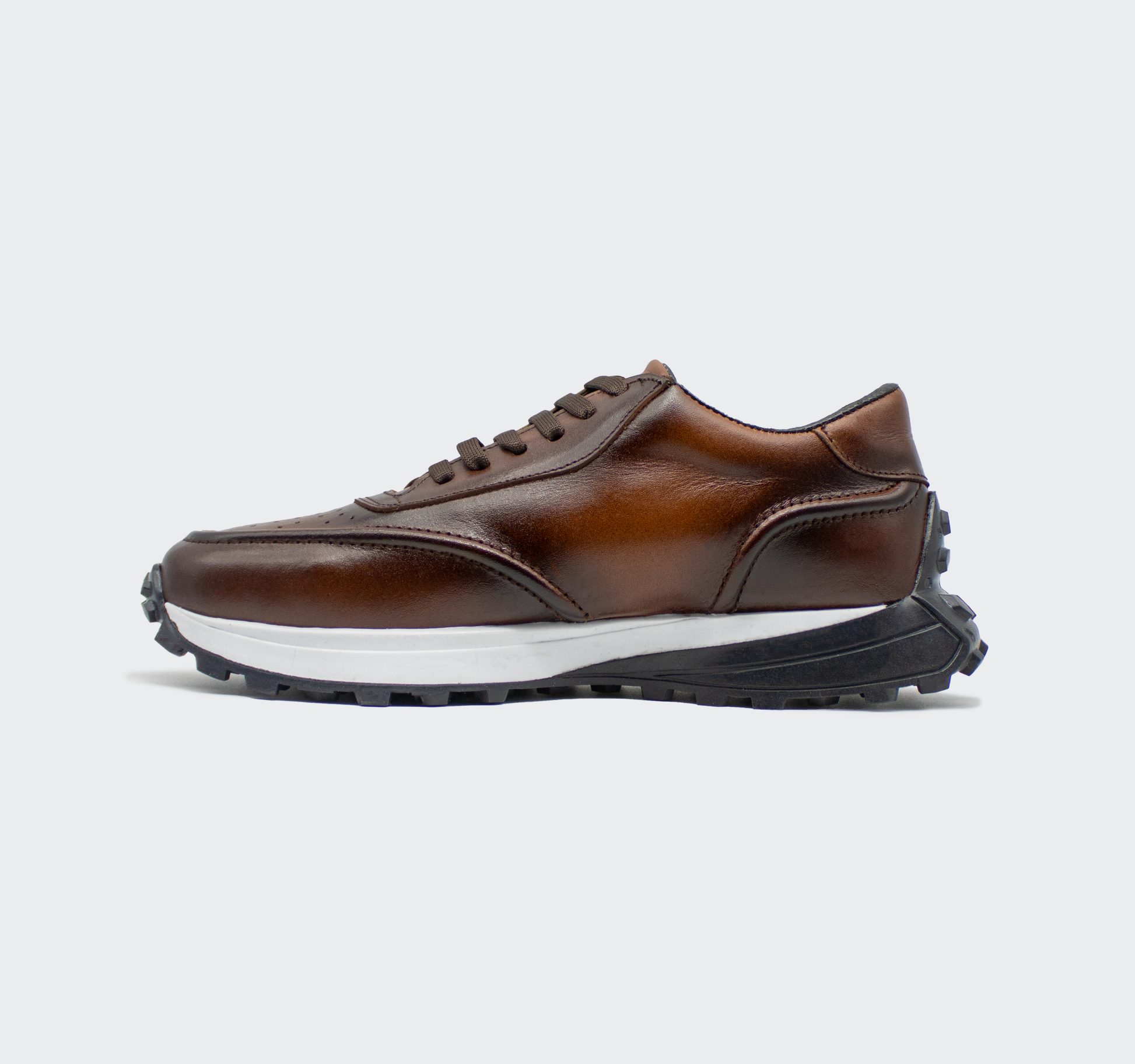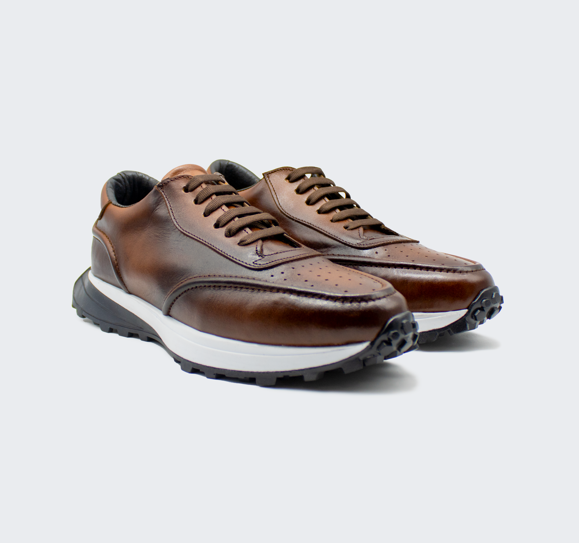 Tenis cafés para caballero, con acabado de lujo, elaborados totalmente a mano por artesanos del calzado Guanajuatenses.